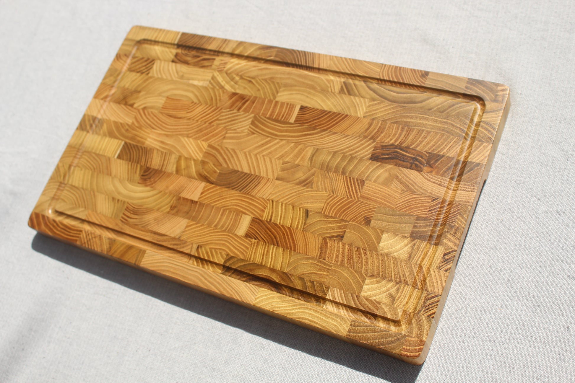 Rectangle, End Grain, Thick, Heavy Duty Cutting Board w/ Hand Grip & Juice Canal on One Side